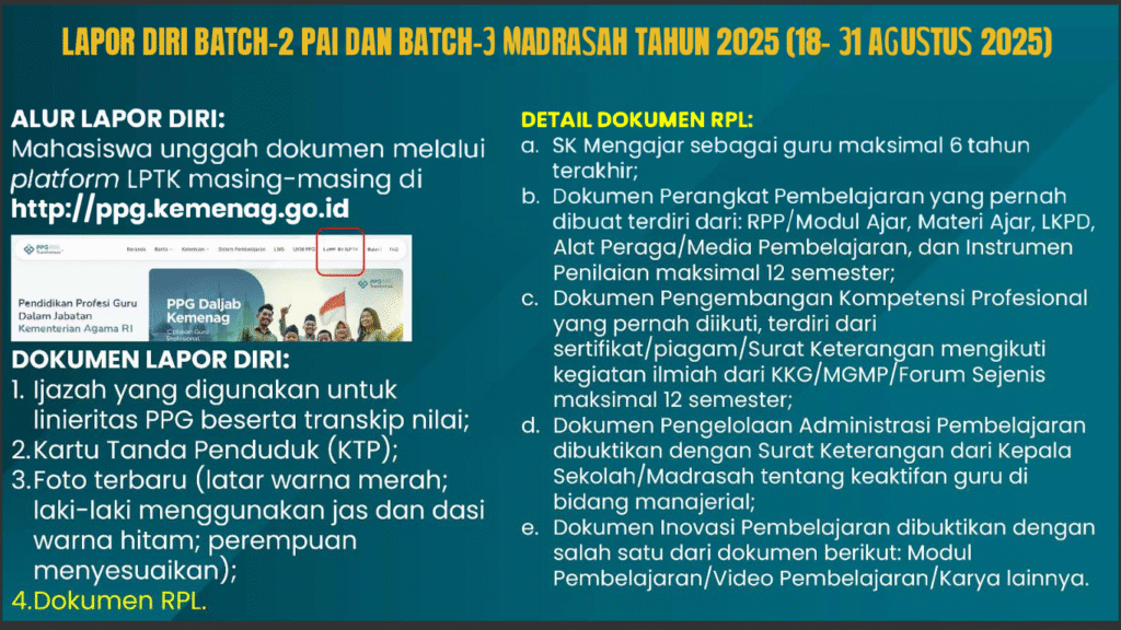 Assalamu’alaikum. Bapak ibu yang terpanggil PPG Batch 4 Dalam jabatan PAI 2025 (17 – 23 Nov 2025)